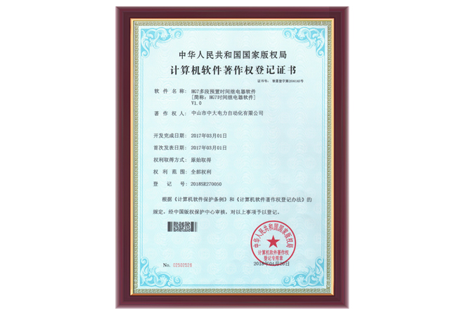 HG7系列軟件著作權登記證書